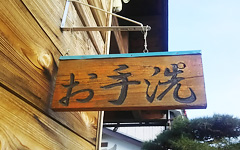 ハウスにはトイレはありませんが、受付の裏に洋式水洗トイレを備えています。写真の看板が目印です。