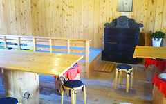 受付の建物には休憩スペースがあります。キッズスペースもありますのでいちご狩りのあとにお休みください。